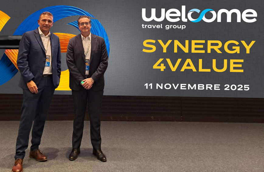 A novembre 2025, durante la convention annuale di Welcome Travel Group, battezzata “SYNERGY 4VALUE”, l’a.d. Adriano Apicella (nella foto col direttore network Dante Colitta) ha delineato una svolta strategica: “Non vogliamo più crescere a livello di numeri, ma aiutare le agenzie con un potenziale importante a sfruttare gli strumenti del network” ha detto, ribadendo il nuovo paradigma del gruppo. Per Welcome Travel Group, il futuro non passa più dall’espansione quantitativa del network, ma da una crescita qualitativa, fondata sulla collaborazione, sul valore condiviso e sull’efficienza operativa.