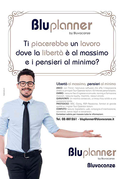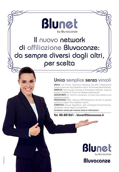 Bluvacanze SpA, dopo 18 mesi di energica ristrutturazione condotta dall’a.d. Alberto Peroglio Longhin, si ripropone sul mercato con tre nuovi progetti. ”Blunet by Bluvacanze è la nuova formula di affiliazione per agenzie di viaggi indipendenti: nell’accordo (fee annuale di 500 euro, nessuna royalty, contratto di tre anni senza penalità in caso di recesso) è previsto l’accesso alla gamma di prodotto Bluvacanze (MSC Crociere, Going, AXA), l’utilizzo del software Tmind con integrazione diretta ai sistemi di prenotazione dei principali t.o italiani, promozioni e campagne d’incentivazione, assistenza della sede centrale (marketing, legale, assicurativa), oltre a biglietteria e servizi Business Travel erogati da Cisalpina Tours” precisa Francesco Butturini, managing director leisure. “Blunetbook è la variante ‘light’ di Blunet (entry fee di 500 euro, no fee annuale, contratto di tre anni senza penalità) riservata alle agenzie che optano per la sola piattaforma di prenotazione e per la contrattualistica. Bluplanner by Bluvacanze (no entry fee, no fee annuale, no royalties) si rivolge invece ad agenti di viaggi esperti, dotati di un portafoglio clienti e desiderosi di lavorare in autonomia, ma facendo riferimento a un’agenzia Bluvacanze sul territorio”. Tre canali che si aggiungono alla tradizionale rete di agenzie di proprietà e in aip (405 p.v. a ottobre 2015).